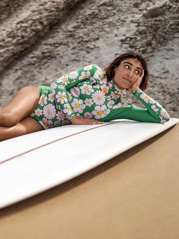 Combining recycled materials with a bright and bold floral print, the 1.5mm long sleeve springsuit of the Pop Surf Collection is a surf essential. Cut from Stretch-Flight neoprene with durable Q-lock stitched seams, the suit ensures flexibility and comfort for smooth sailing on the waves.