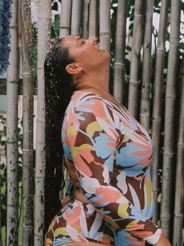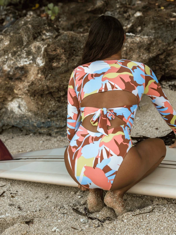 Get psyched on surf with the Floradelic women’s long sleeve printed swimsuit. Eco-consciously crafted in durable yet soft and stretchy recycled material, this fully-lined swimwear one-piece features a sporty yet fashion-forward design and removable padded bra cups for perfect shape and support.