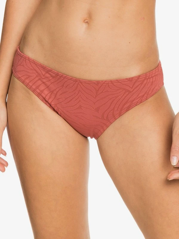 Made of textured jacquard swim fabric in a tonal animal print, these mid-rise bikini bottoms offer full bum coverage so you can let your wild side wander in comfort and confidence.